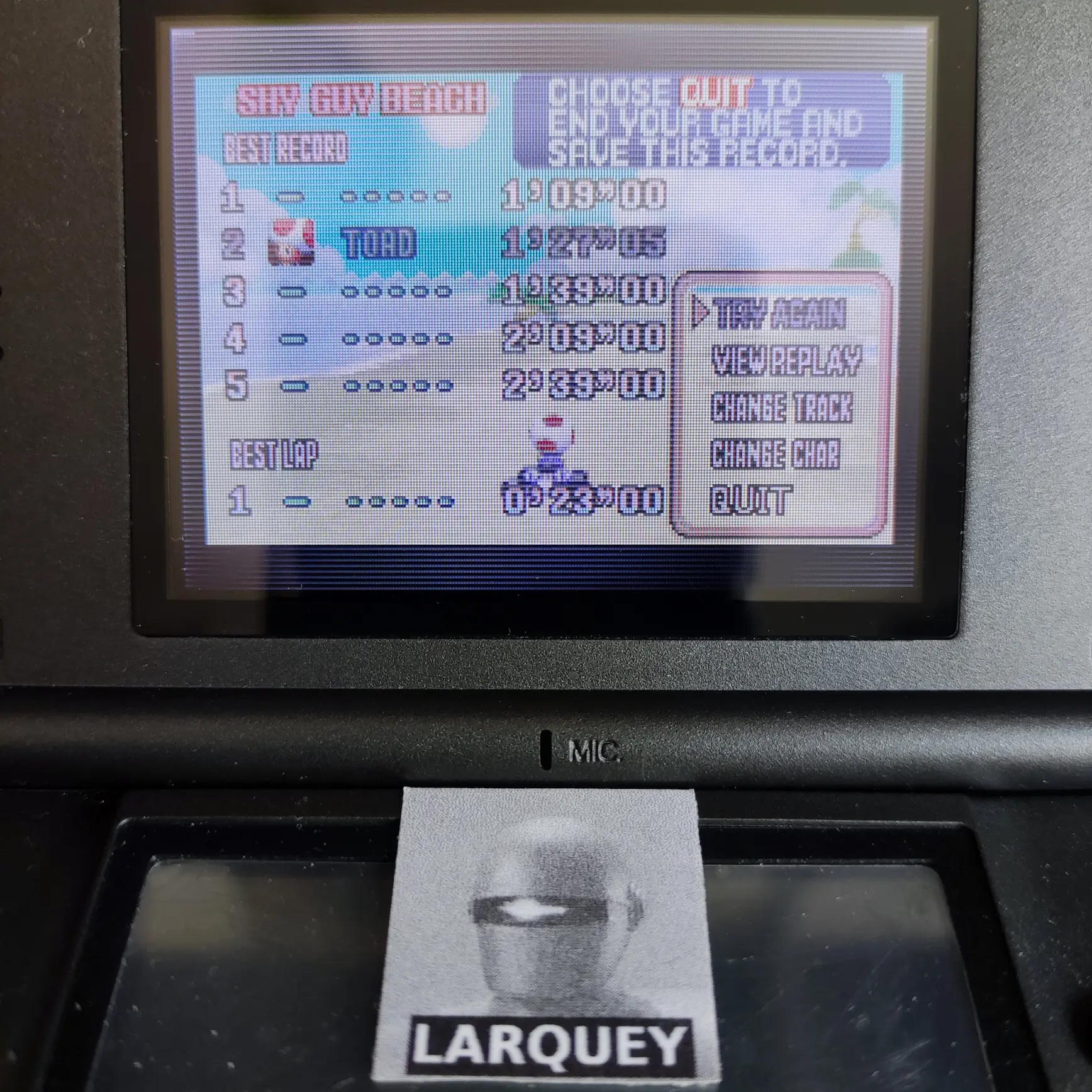 Play the game in 1 player mode with default settings The total laps can be different, it depend of the track : 3 laps for Super Circuit tracks, and 5 laps for tracks from the SNES tracks. |
