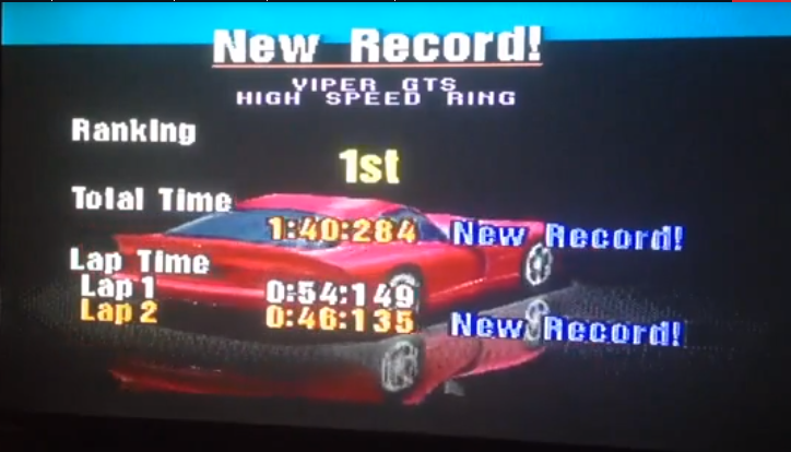 Play the game in 1 player mode with default settings : - Choose "Arcade Mode", then "Time Trial". - Manufacturer and Car are free. - Driving Style and Transmission are free. |