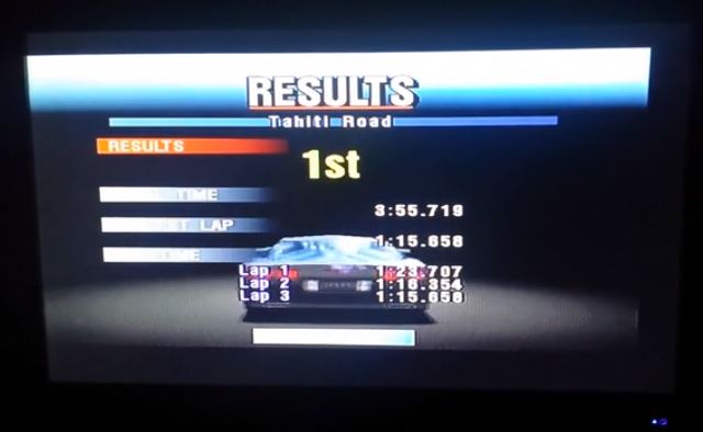 Class A Tahiti Road FORWARDS race starts at 1.55. Fastest lap starts at 4.38. Times shown at 6.05.