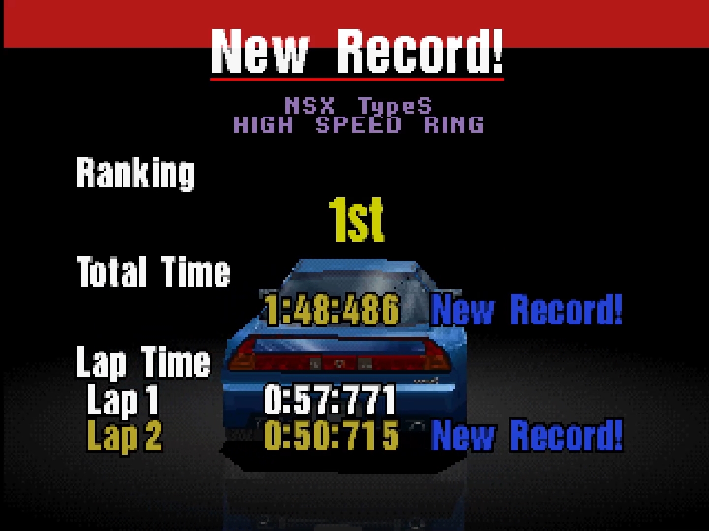 Emulation checked, game checked, Arcade / Time Trial checked, track checked, gameplay checked, time checked, initials checked.