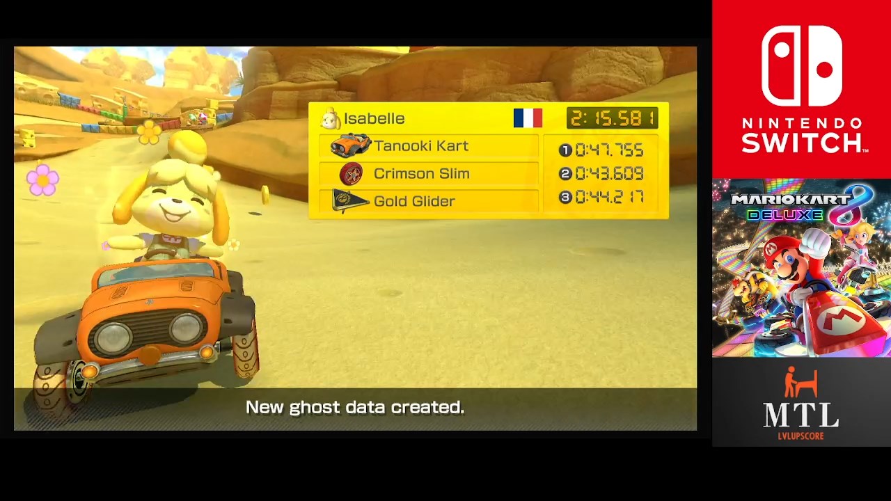 Hardware checked, game checked, Time Trials checked, 150cc / Blue checked, track checked, gameplay checked, time checked.