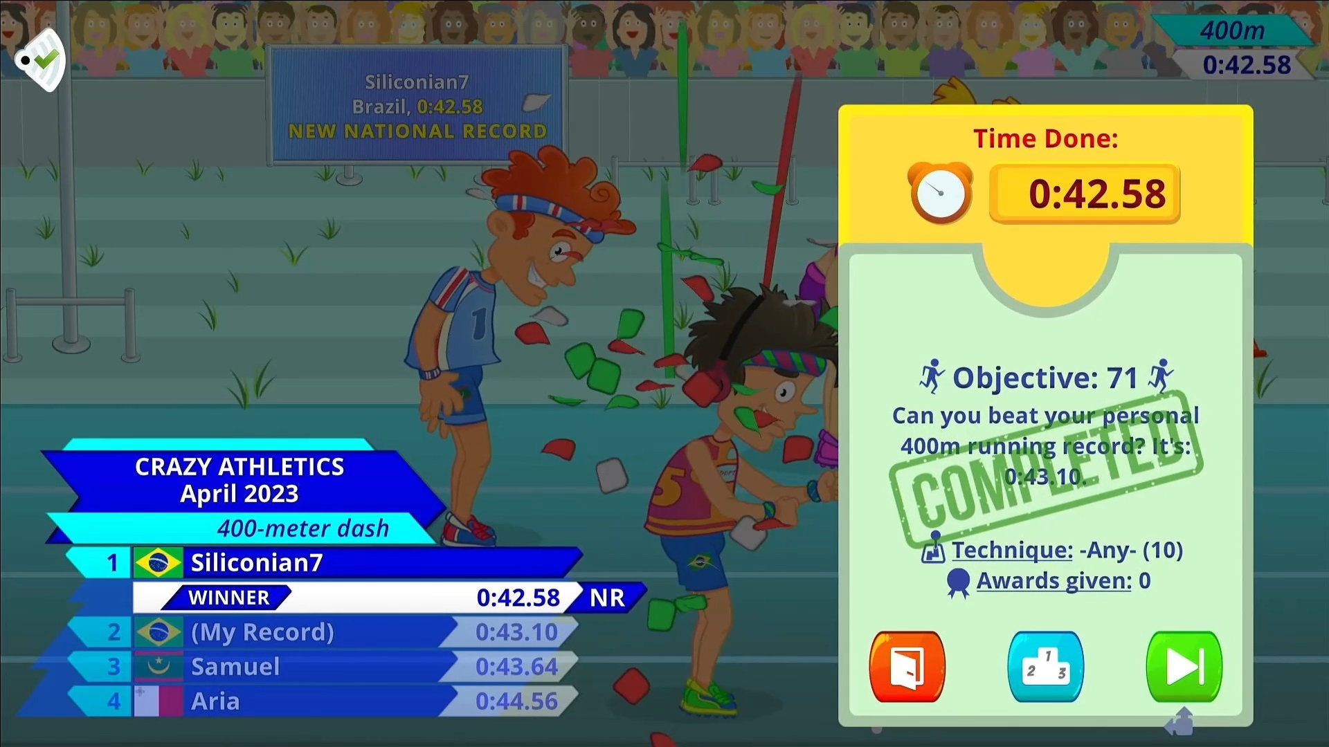 Specific Rules: Play the game in 1 player mode with default settings