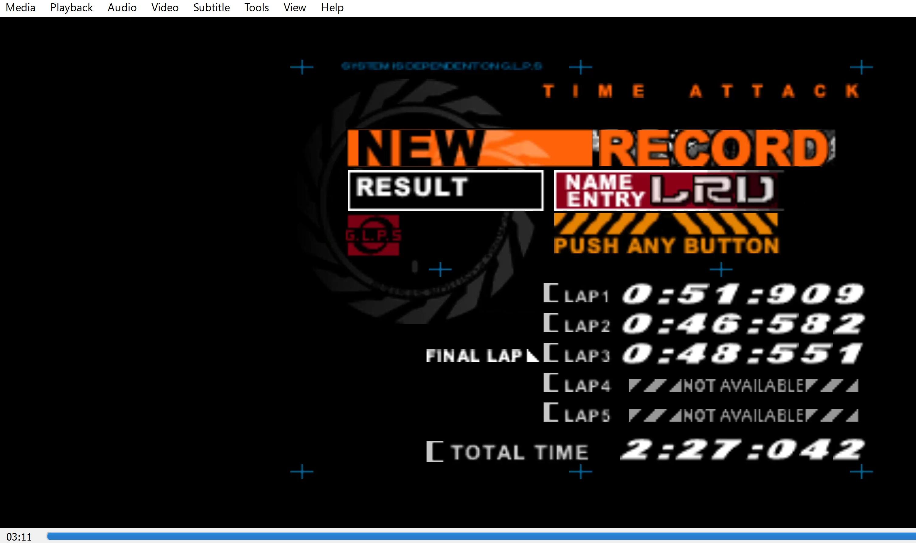 Emulation checked (I don't know how to tell if it is NTSC or PAL), game checked, Bikini Island selected, gameplay checked, time checked, initials checked.