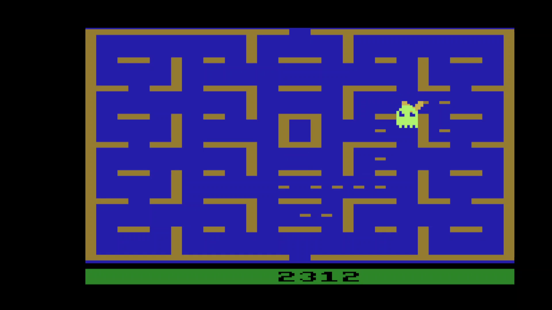 ⚙️ Game 5 ∙ One player ∙ Pac-Man speed: Fast ∙ Ghost speed: 3 - Jogging ⏪ Left difficulty switch setting must remain in the position indicated by the leaderboard category: 🅰 Short-lasting power pellets 🅱 Longer-lasting power pellets ⏩ Right difficulty switch setting has no effect in a one-player variation, and can therefore be in any position at any time. 🔄 Rollover: 100,000 ✒️ Tod Frye ©️ Atari 🗓 1981 F 10.19.24 |