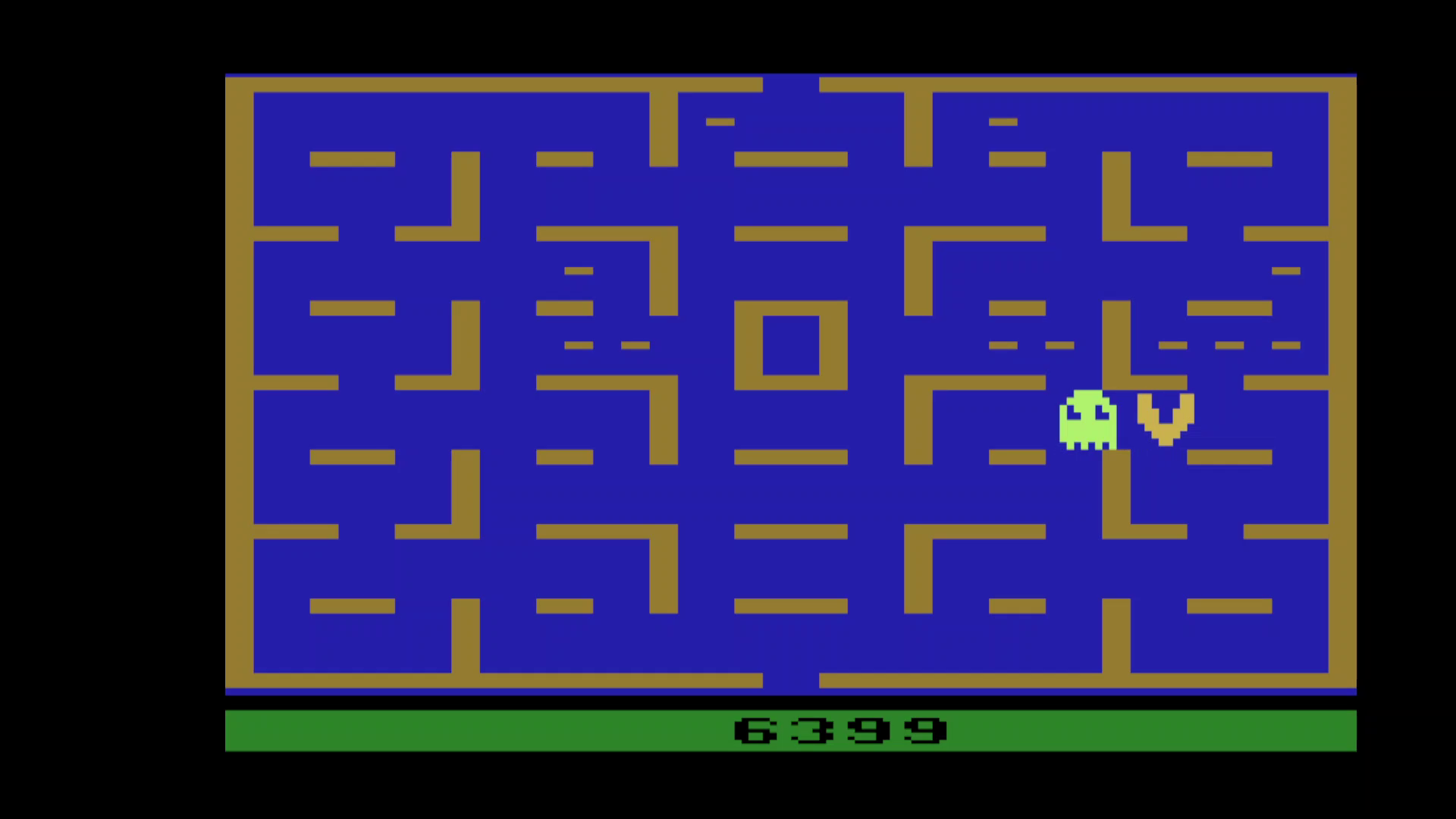 ⚙️ Game 5 ∙ One player ∙ Pac-Man speed: Fast ∙ Ghost speed: 3 - Jogging ⏪ Left difficulty switch setting must remain in the position indicated by the leaderboard category: 🅰 Short-lasting power pellets 🅱 Longer-lasting power pellets ⏩ Right difficulty switch setting has no effect in a one-player variation, and can therefore be in any position at any time. 🔄 Rollover: 100,000 ✒️ Tod Frye ©️ Atari 🗓 1981 F 10.19.24 |