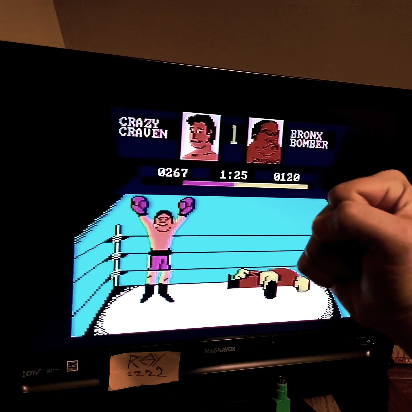 Looking at footage of the Atari 8 bit home computer version, I notice it's quite slow. The 7800 runs double speed with rapid punching.