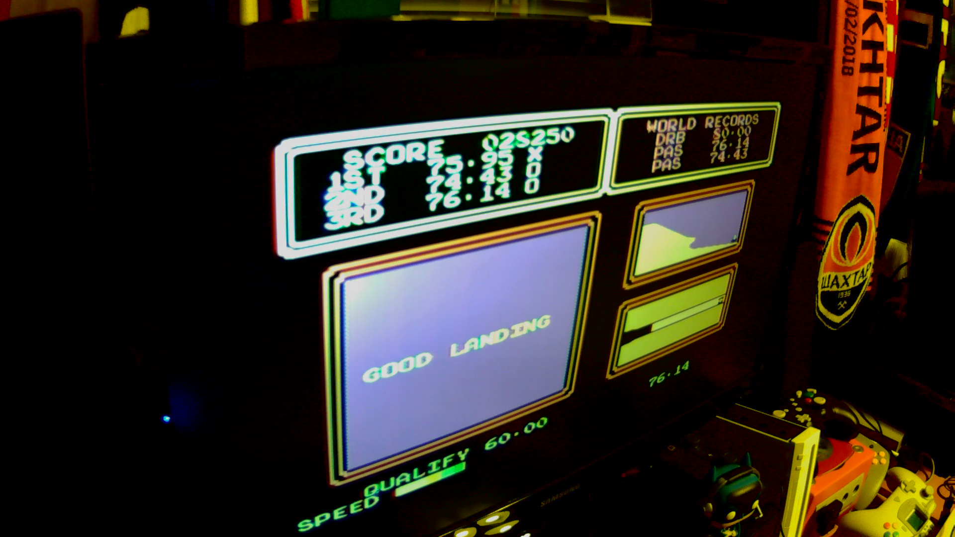 Game checked, initials checked, event checked, gameplay checked, distance checked, hardware checked at end of video.