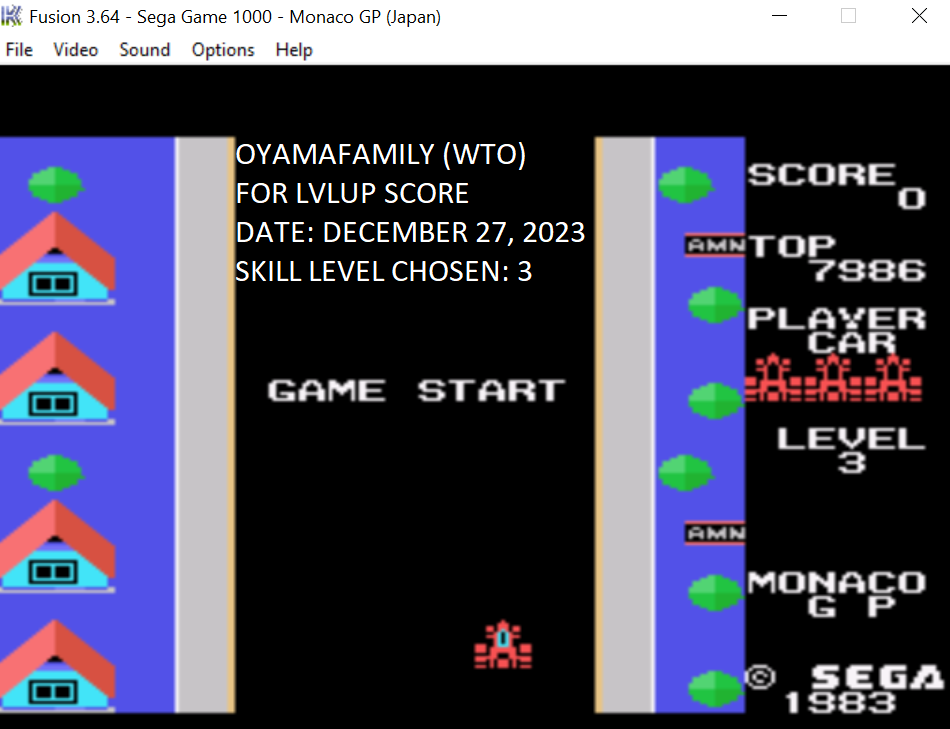 Emulation checked, game checked, Level 3 checked, score checked.