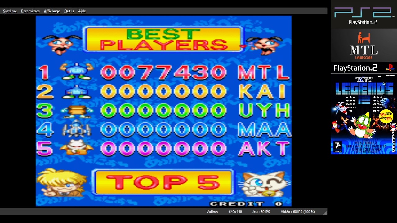 Play the game in 1 player mode with default settings *** Balloon Bomber *** No difficulty setting on , so : - Easy = 5Lives - Normal = 4Lives - Hard = 3Lives (Default) *** Cleopatra Fortune *** Always select Easy (Level 1) mode (no bonus point), in the in-game difficulty selection mode. Difficulty is chosen in the compilation menu ! *** Lunar Rescue *** No difficulty setting on , so : Easy = 6 lives Normal = 5 lives Hard = 3 lives *** Bust-A-Move Again *** Select Player VS Computer & Normal difficulty *** Qix *** As there is no global difficulty settings for the whole game, difficulty must be set in the stage difficulty menu instead *** Space Invaders '95 *** As there is no global difficulty settings for the whole game, difficulty must be set in the stage difficulty menu instead *** The Fairyland Story *** Easy = 5 Lives Normal = 3 Lives Hard = No hard setting *** Wild Western *** Easy = 6 Lives Normal = 3 Lives Hard = No hard setting |