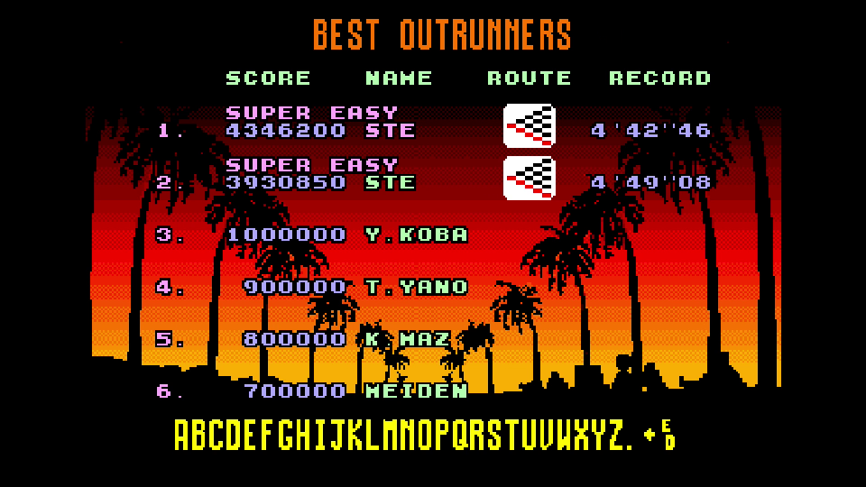 Emulation checked, game checked, Level = Super Easy checked, gameplay checked, score checked, initials checked.