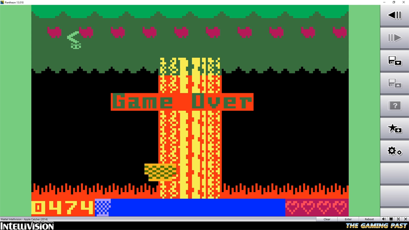 Apple Catcher is a 2014 homebrew game by Kiwi. It is for the Mattel Intellivision and is built using IntyBASIC.