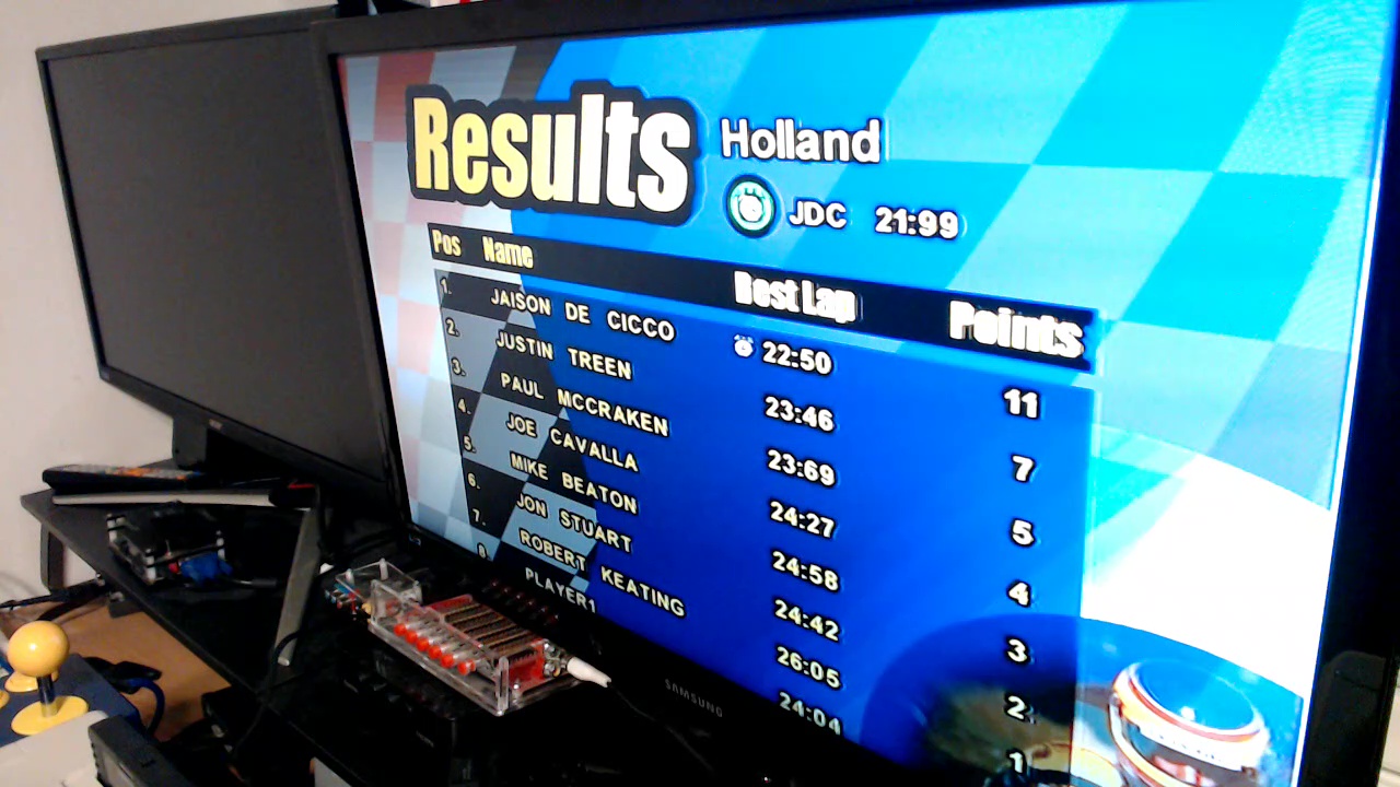 Play the game in Single Race Mode. Default Options to be used are: - Difficulty: Easy - Race Lenght: 6 Laps - Damage: Off - Tilt: Normal |