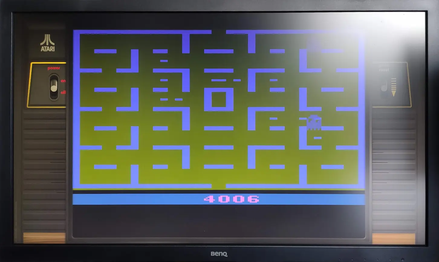 ⚙️ Game 6 ∙ One player ∙ Pac-Man speed: Fast ∙ Ghost speed: 4 - Running ⏪ Left difficulty switch setting must remain in the position indicated by the leaderboard category: 🅰 Short-lasting power pellets 🅱 Longer-lasting power pellets ⏩ Right difficulty switch setting has no effect in a one-player variation, and can therefore be in any position at any time. 🔄 Rollover: 100,000 ✒️ Tod Frye ©️ Atari 🗓 1981 F 10.19.24 |