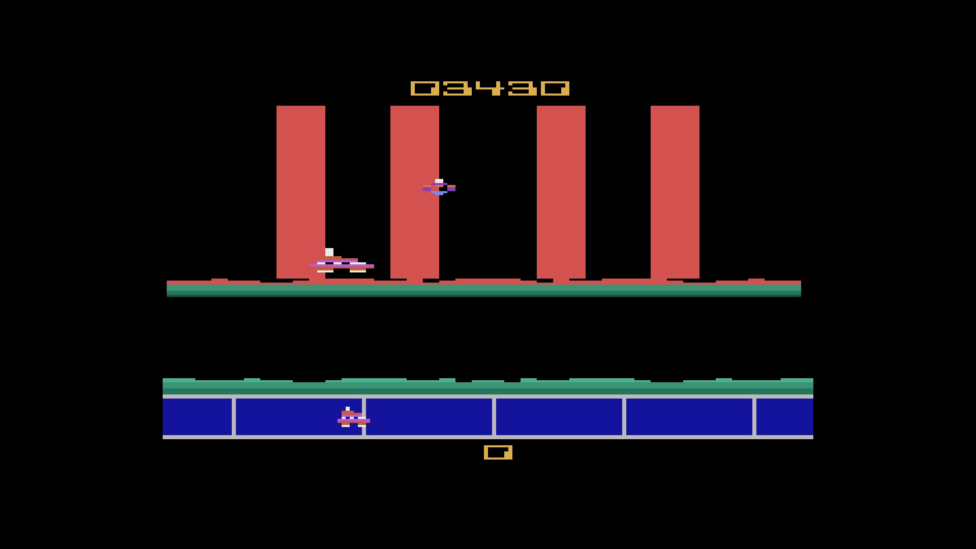 Only one game variation in this title. Game select switch takes you to the intro screen. Difficulty switch settings have no effect in this title, and can therefore be in any position at any time. Rollover: 100,000 6.3.21 |