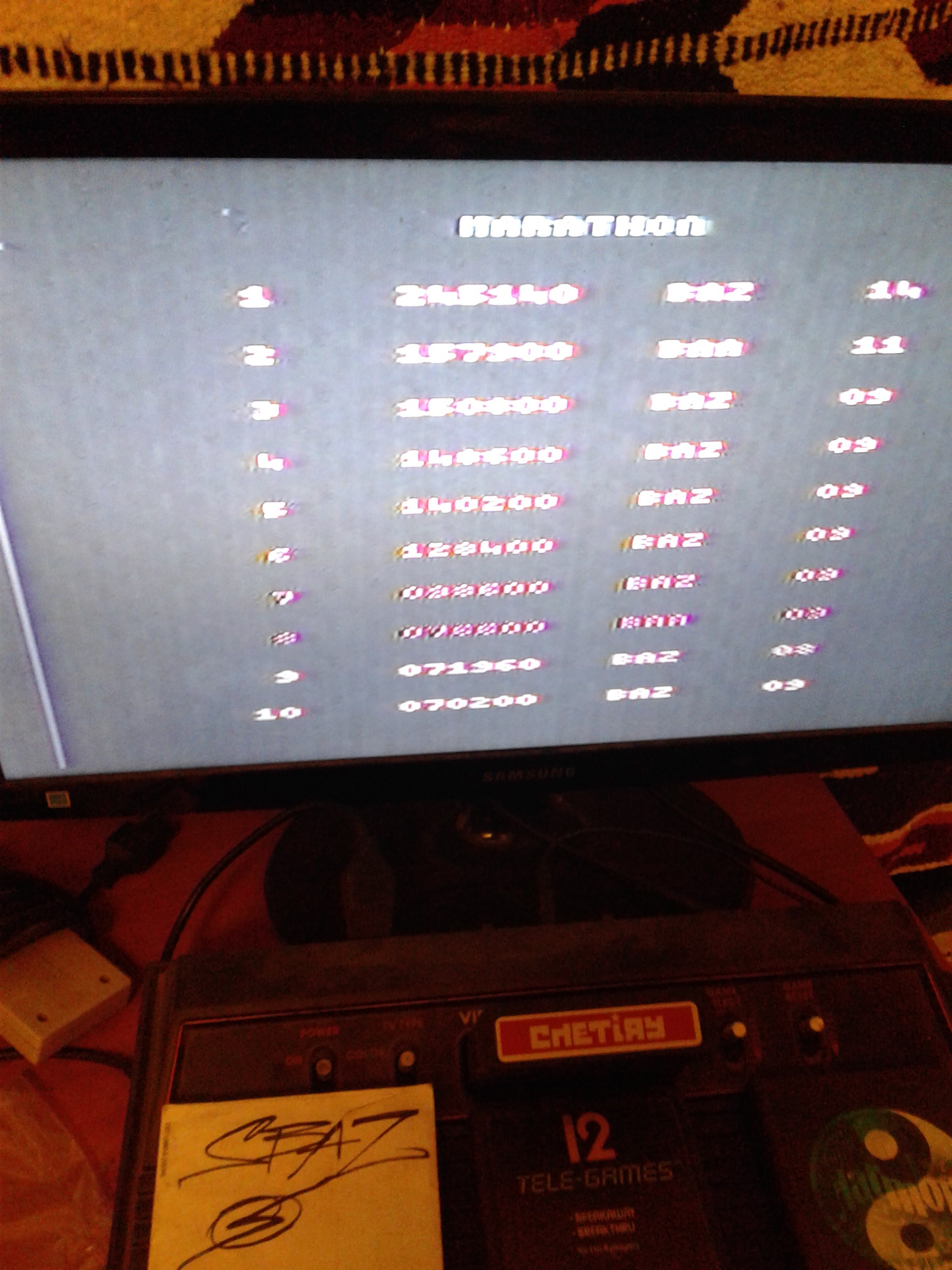 Difficulty switches can be in any position at any time. Must be played on a real 2600-compatible console or expansion module. Play with default settings unless otherwise specified. No code modifications that give the player an advantage over other players. No continues. No use of trainers, cheats, auto-fire (when not default present in-game) , game saves, or cheat codes. Can be overruled by the Specific Rules. It is discouraged and may lead to voters not accepting your score to: - excessively point farm - use glitches or other game exploits |