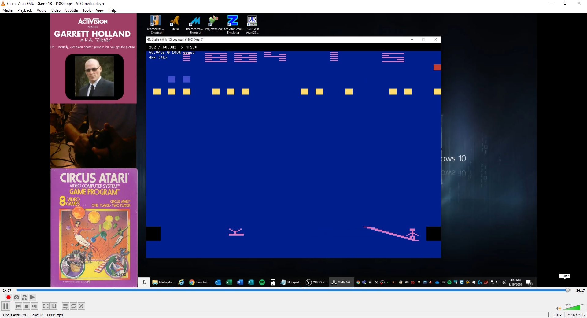 βοΈ Game 1 β "Breakout Circus" β One player β Clown rebounds off balloons: Yes β Barriers: No β Balloon regeneration: Per row, after all balloons in one row are popped βͺ Left difficulty switch setting must remain in the position indicated by the leaderboard category: π ° Clowns bounce faster π ± Clowns bounce at normal speed β© Right difficulty switch setting has no effect in a one-player variation, and can therefore be in any position at any time. π Rollover: 10,000 βοΈ Mike Lorenzen ©οΈ Atari π 1980 F 10.19.24 |