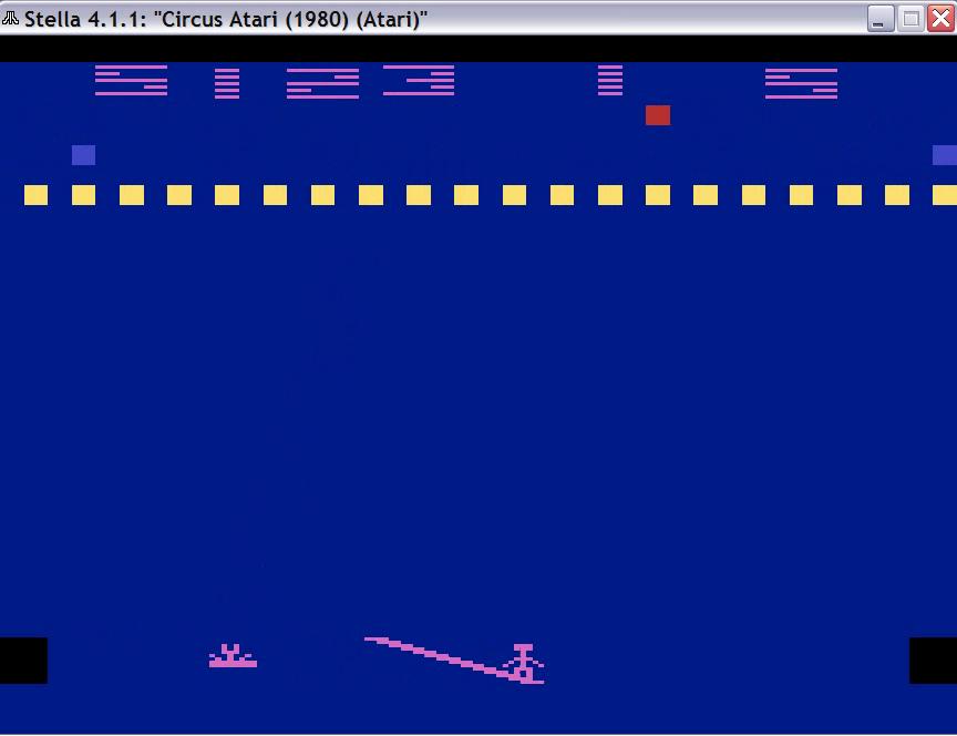 ⚙️ Game 1 ∙ "Breakout Circus" ∙ One player ∙ Clown rebounds off balloons: Yes ∙ Barriers: No ∙ Balloon regeneration: Per row, after all balloons in one row are popped ⏪ Left difficulty switch setting must remain in the position indicated by the leaderboard category: 🅰 Clowns bounce faster 🅱 Clowns bounce at normal speed ⏩ Right difficulty switch setting has no effect in a one-player variation, and can therefore be in any position at any time. 🔄 Rollover: 10,000 ✒️ Mike Lorenzen ©️ Atari 🗓 1980 F 10.19.24 |