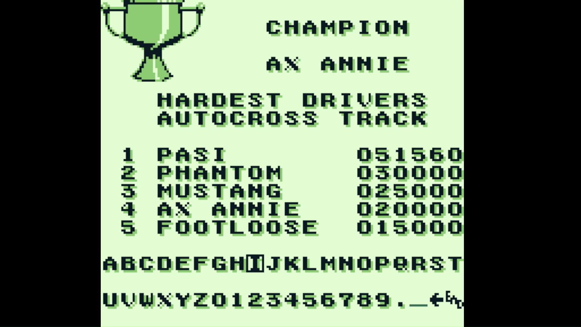 Emulation checked, game checked, Autocross checked, gameplay checked, score checked, initials checked.