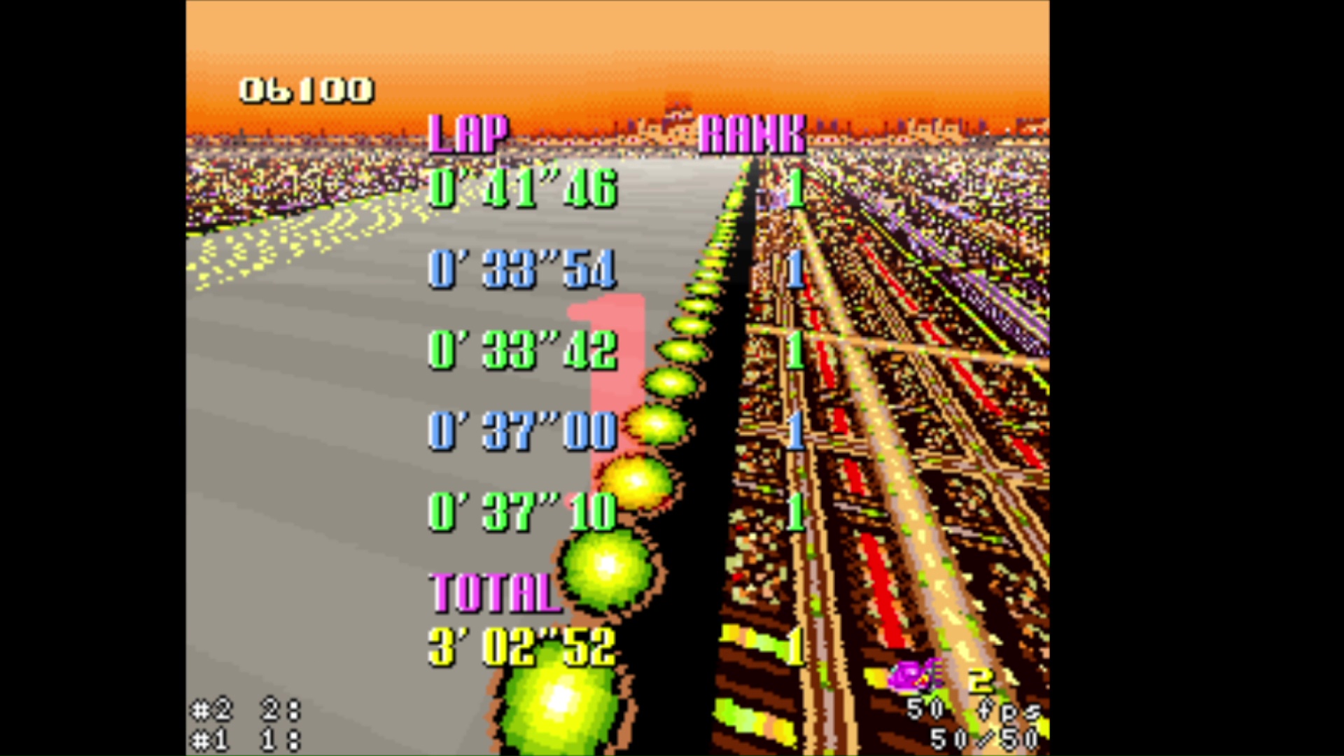 • zsnes (all versions) and snes9x emulators <=1.53 banned because inaccuracy in timing • super start allowed (pushed by other cars at start) • shortcuts allowed • practice mode: rival allowed • for best lap : use of 4 boosts on same lap allowed (1 just before the finish line on 4th lap and 3 others on last lap) • records menu is a mix of gp and practice time (pink = practice / blue = GP) • try again is allowed (3 lives = 3 retries maximum) • use of pause when the timer is started is forbidden • use of turbo button controller is forbidden |