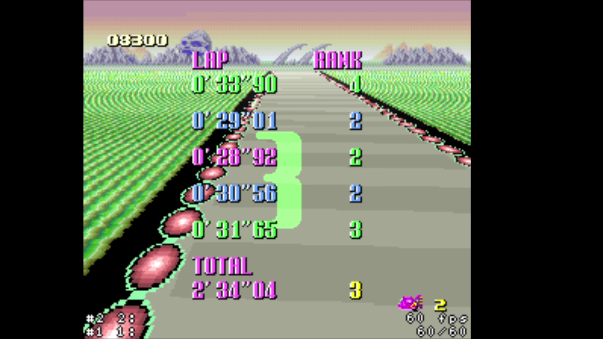 • zsnes (all versions) and snes9x emulators <=1.53 banned because inaccuracy in timing • super start allowed (pushed by other cars at start) • shortcuts allowed • practice mode: rival allowed • for best lap : use of 4 boosts on same lap allowed (1 just before the finish line on 4th lap and 3 others on last lap) • records menu is a mix of gp and practice time (pink = practice / blue = GP) • try again is allowed (3 lives = 3 retries maximum) • use of pause when the timer is started is forbidden • use of turbo button controller is forbidden |