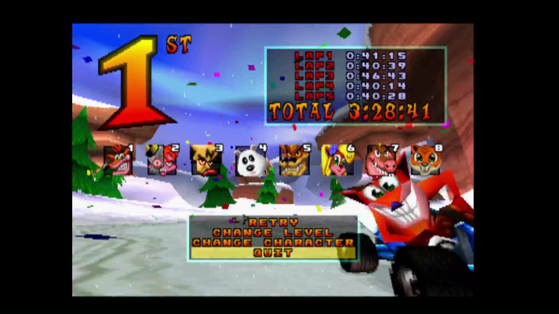 Play the game in 1 player mode with default settings Character choice is free |