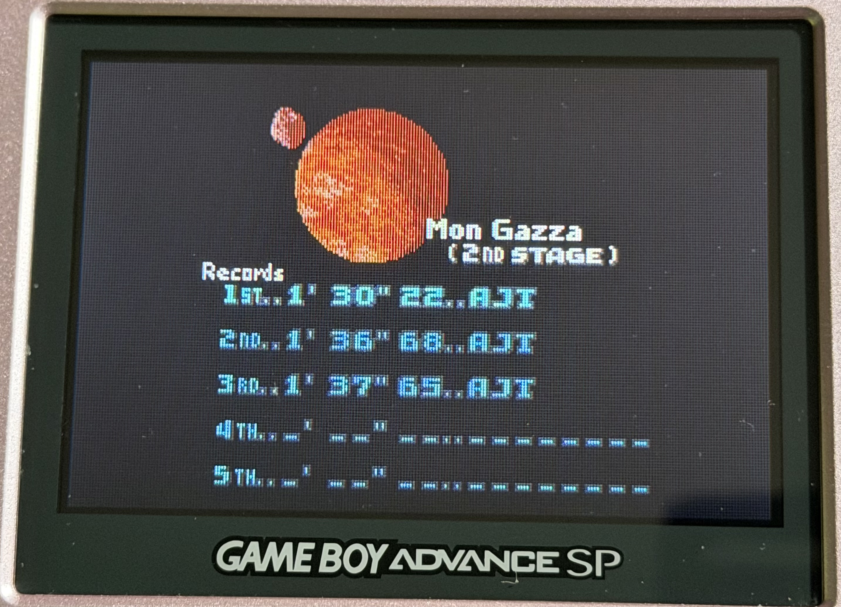 Hardware checked, game checked, planet and stage checked, time checked, initials checked.