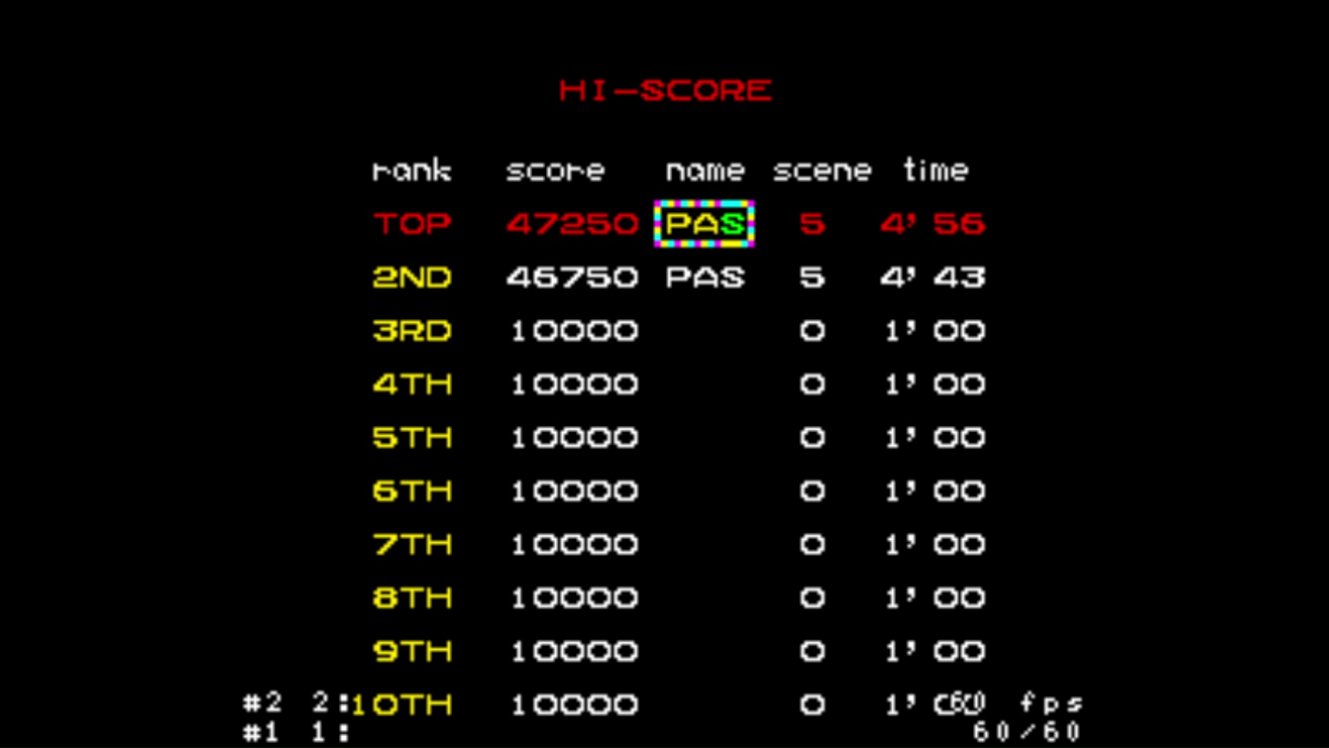 Play with default settings unless otherwise specified. No use of trainers, cheats, saved game files, auto-fire (when not default present in-game), emulator save states, or other emulator advantages. No use of code modifications that give the player an advantage over other players. 1 player only. No continues. It is discouraged and may lead to voters not accepting your score to: - excessively point farm - use glitches or other game exploits NTSC ROM and NTSC emulation recommended. Super Nintendo scores recorded on SNES Mini, Wii, WiiU and Switch can also go here. When using an emulator not provided by Nintendo, it is recommended to show which emulator and version was used. It is also recommended to use an emulator with high accuracy, as some emulators their timings are off, which can lead to unfair advantages or disadvantages in certain games. If the community finds a certain emulator to be a problem, we can decide to move or remove scores after acceptance. |