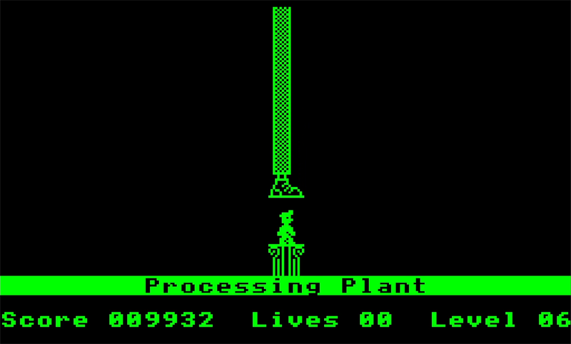 In Manic Miner, Miner Willy has to navigate twenty screens of platforming action to escape with treasure found in a hidden underground civilisation. The caverns are bizarre, filled with many strange automatons left behind by the now fallen civilisation. Willy must collect all the flashing objects on each level, which opens an exit to the next cavern. Loses all your lives and you get the meme-worthy final sequence where Willy is squashed by a boot.