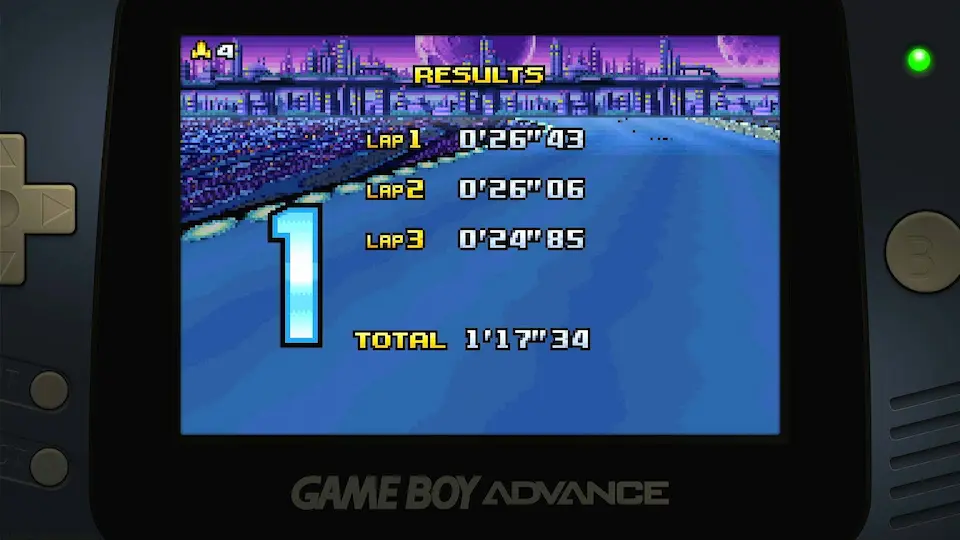 Start : 01:00 Results : 02:41 Total : 01:17:34 Best Lap : 00:24:85 Points : 100