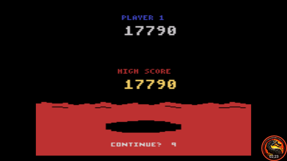 Game: Pilot ∙ 4 stages Left difficulty switch setting must remain in the position indicated by the leaderboard category. A/Expert: Enemy cannon fire. B/Novice: Enemy cannons disabled. Right difficulty switch setting has no effect in a one-player variation, and can therefore be in any position at any time. ∙ Toggle Color/BW switch to pause game. ∙ Pausing is ALLOWED. Rollover: 1,000,000. Homebrew Author: John W. Champeau Released: 2006 2.13.22 |