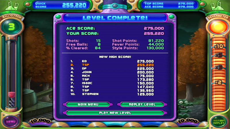 02:40 Last target peg hit. 10,000 point bonus scored. Final score 255,220 points.
