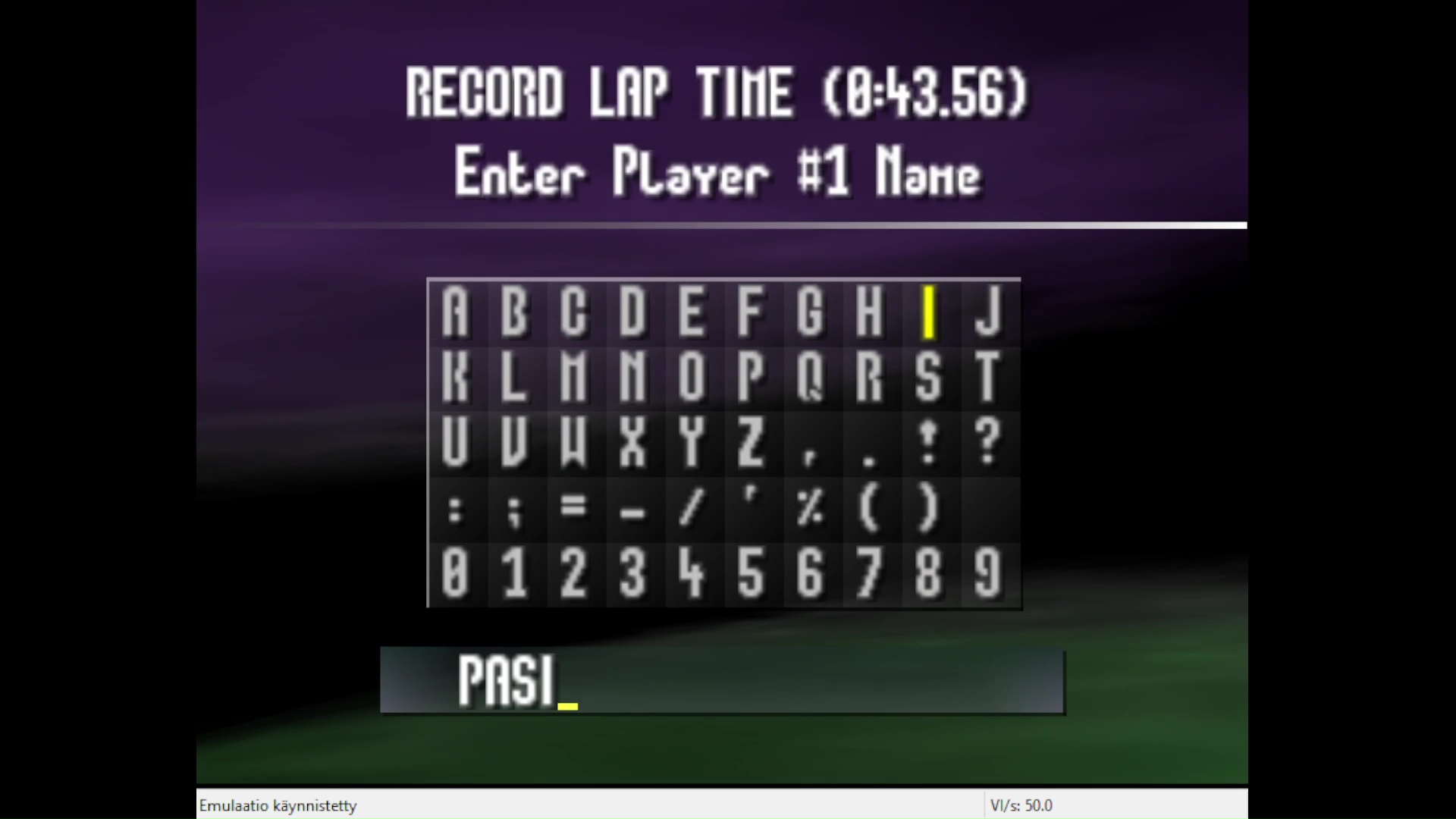 Emulation checked, game checked, Time Trials / Desert 1 selected, gameplay checked, name checked, time checked.