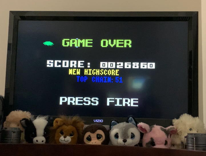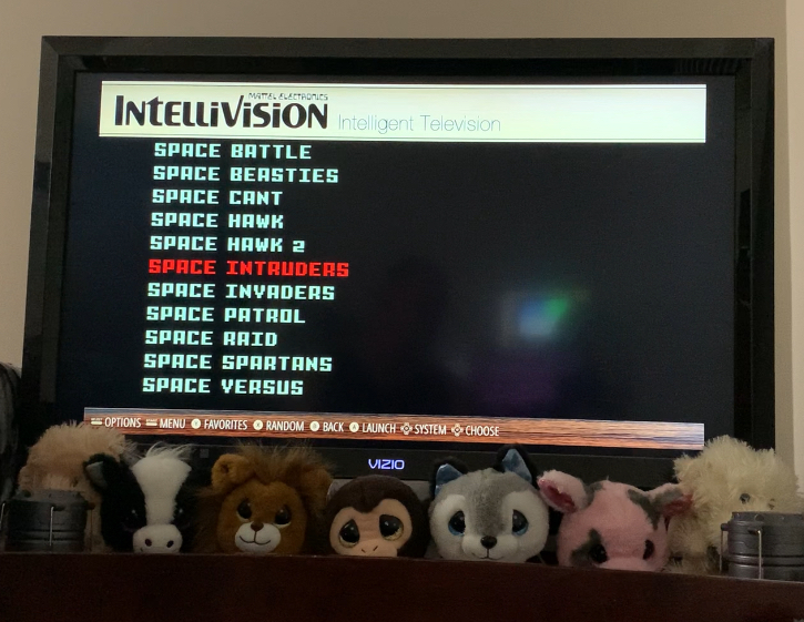 System reset (menu screen showed Space Intruders as the current game).