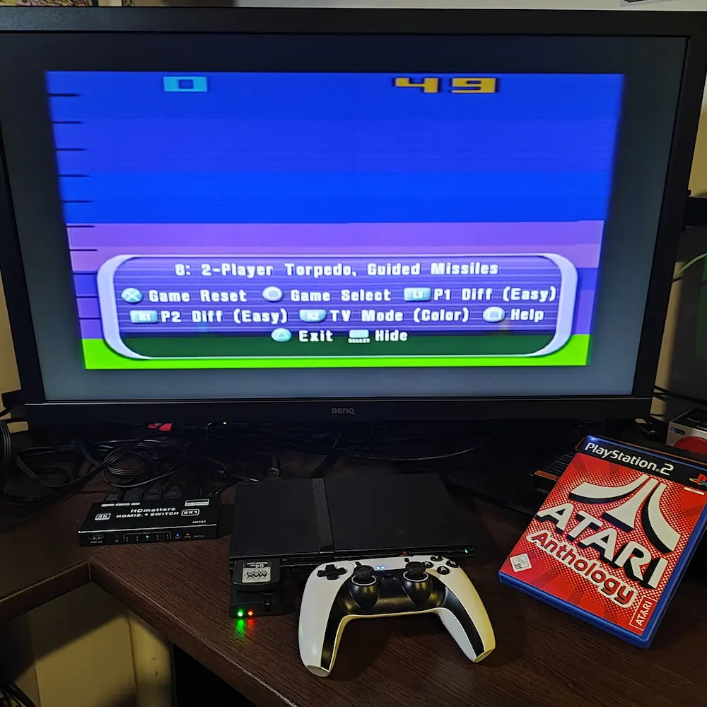 Play the game in 1 player mode with default settings : On "Game Select", choose "8 : 2-Player Torpedo, Guided Missiles", but play with one player only ! |