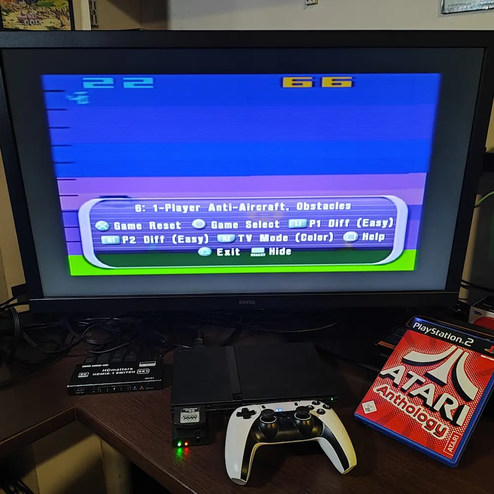 Play the game in 1 player mode with default settings : On "Game Select", choose "6 : 1-Player Anti-Aircraft, Obstacles" |