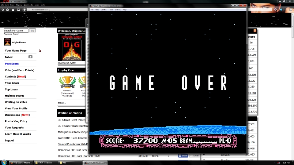 Play with default settings unless otherwise specified. No use of trainers, cheats, saved game files, auto-fire (when not default present in-game), emulator save states, or other emulator advantages. No use of code modifications that give the player an advantage over other players. 1 player only. No continues. It is discouraged and may lead to voters not accepting your score to - excessively point farm - use glitches or other game exploits |
