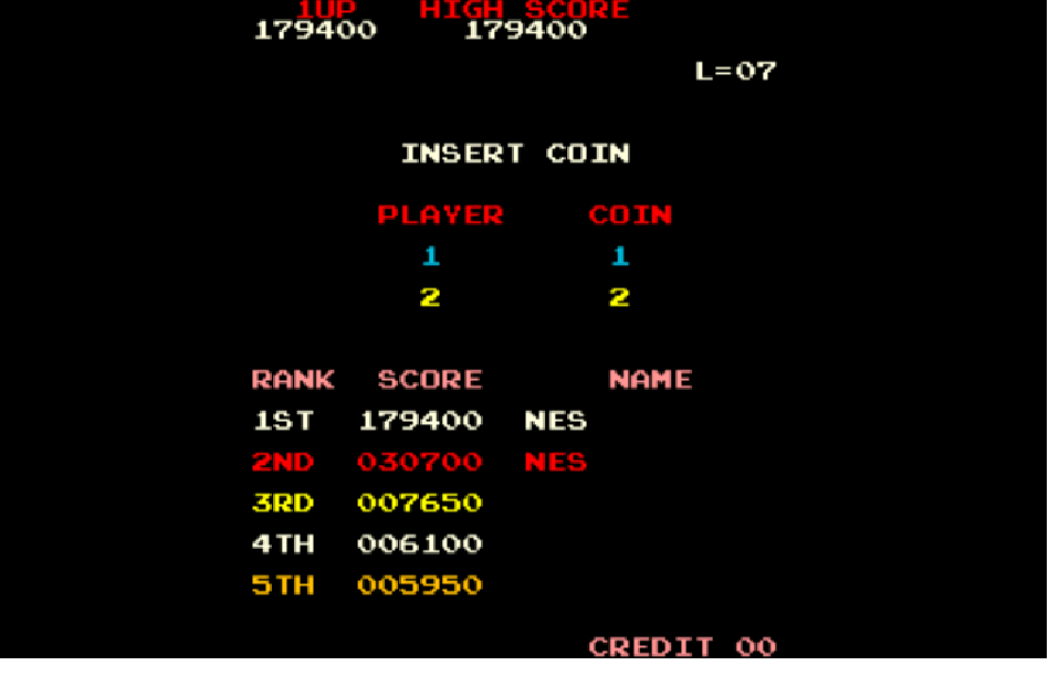 Play the game in 1 player mode with default settings: Lives: 3 Bonus Life: 7000 |