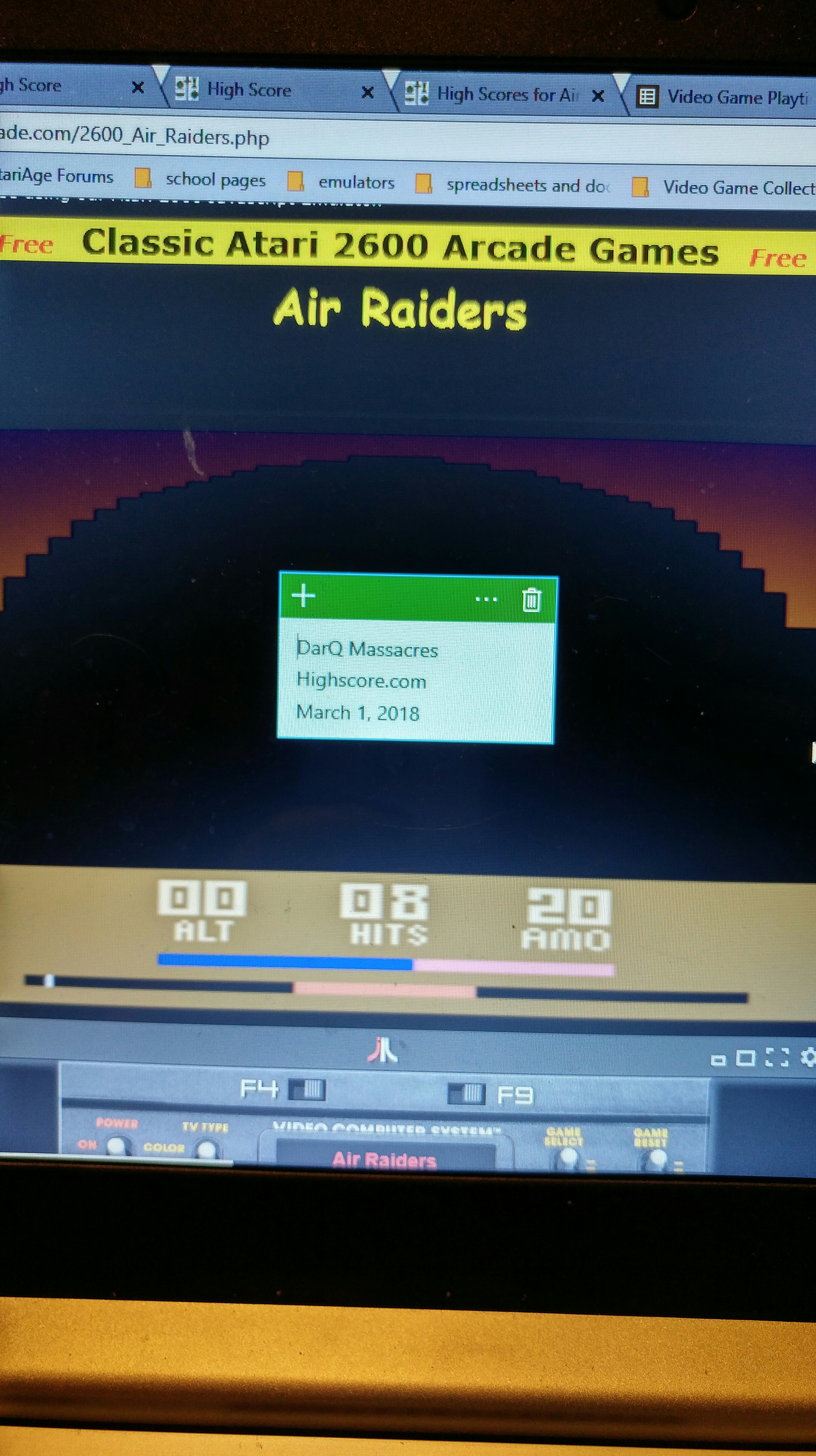 Left difficulty switch setting must remain in the B/Novice position throughout gameplay. Right difficulty switch setting may be in any position at any time. No use of trainers, cheats, saved game files, auto-fire (when not default present in-game), emulator save states, or other emulator advantages. No use of code modifications that give the player an advantage over other players. No continues. It is discouraged and may lead to voters not accepting your score to: - excessively point farm - use glitches or other game exploits |