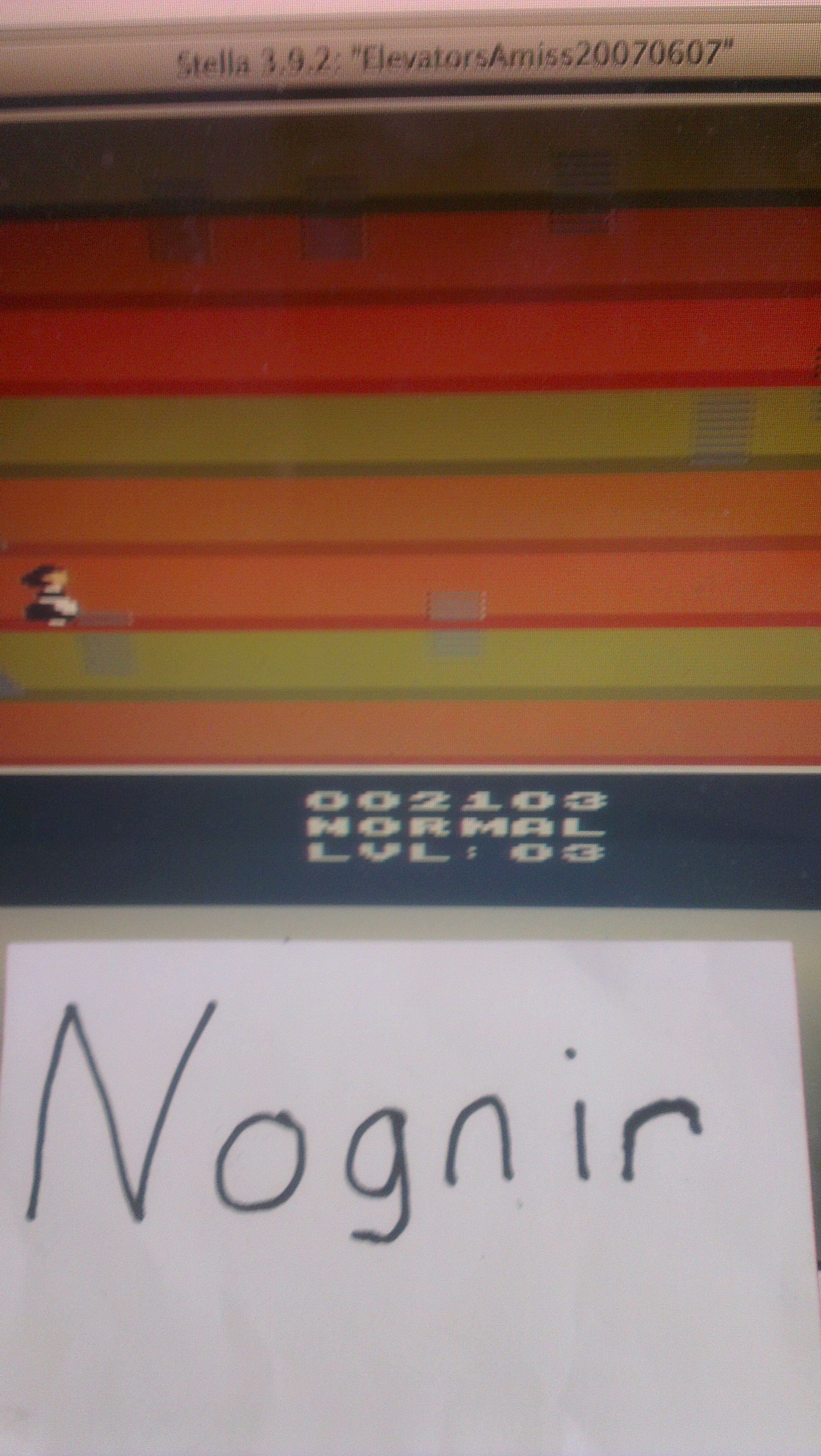 Normal Mode: ∙ One player ∙ Start with 7 elevators ∙ Floor bonus - 40 ∙ Extra lives awarded until Level 11 ∙ Constantly-moving Maria Difficulty switch settings have no effect in this title, and can therefore be in any position at any time. Homebrew Author: Bob Montgomery Released: 2007 5.2.21 |