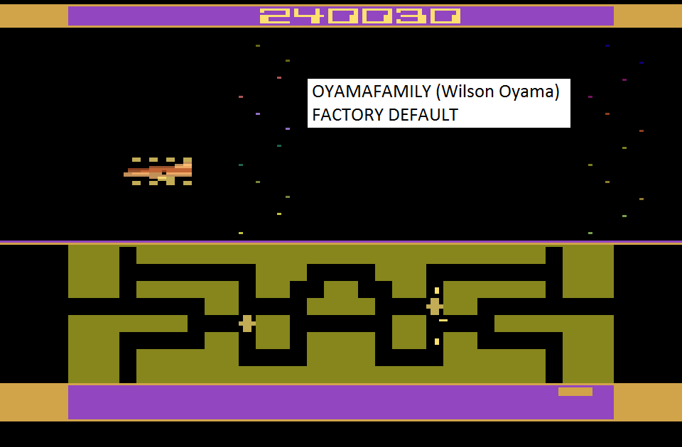 Only one game variation in this title. Game select switch has no effect. Difficulty switch settings have no effect in this title, and can therefore be in any position at any time. Color/BW switch pauses game. Pausing using this method is ALLOWED. Pausing using any other method is prohibited. 5.9.21 |