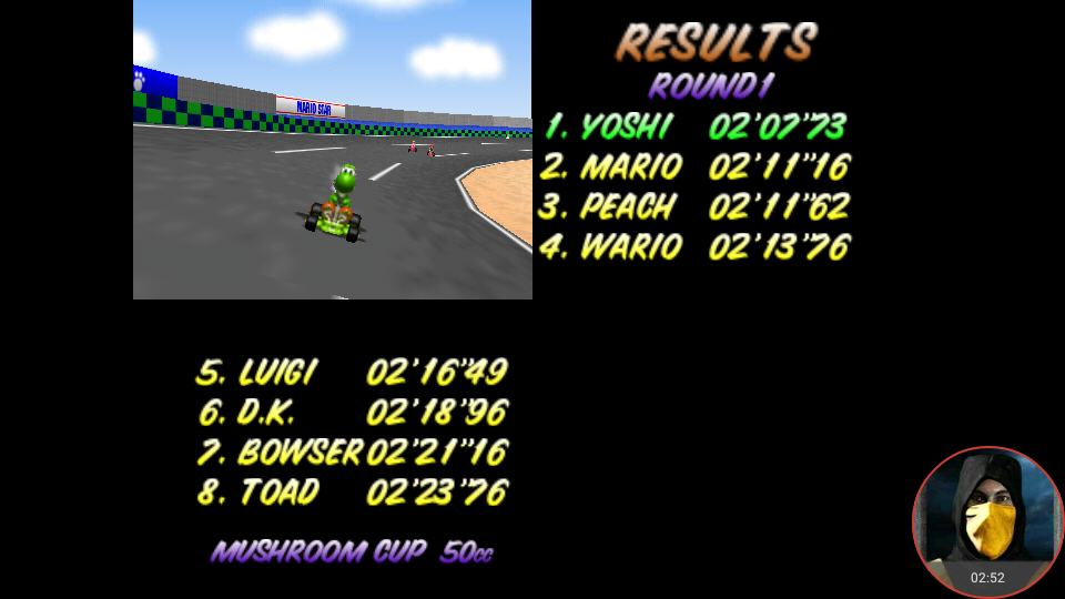 Played with an PAL game on a PAL N64 (HW or Emu) for PAL. Played with an NTSC game on a NTSC N64 (HW or Emu) for NTSC. INFO WHEN POSTING YOUR SCORES: If you play Time Trial you MUST post it in Time Trail Best Lap or Time Trail Total Time If you play a GP, you post on one of the CC boards. Your GP points go to Total Points Cup and you'll have to select the appropriate cup and CC as a track (which you can find all the way down the tracks pull down) |