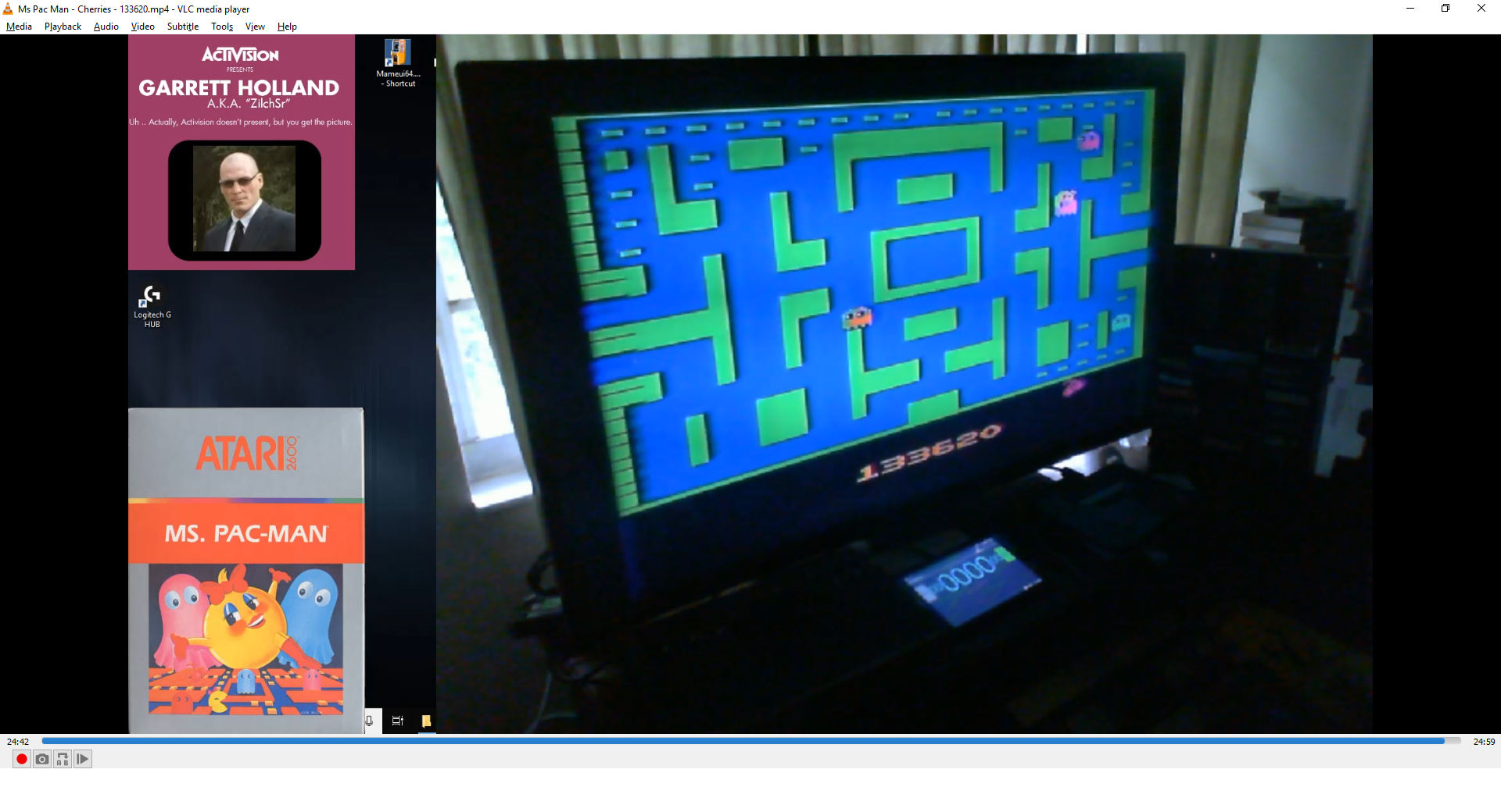 βοΈ Game variation: Cherries β One player β Four ghosts βͺ Left difficulty switch setting has no effect in this title, and can therefore be in any position at any time. β© Right difficulty switch setting has no effect in this title, and can therefore be in any position at any time. π Rollover: 1,000,000 βοΈ Mark Ackerman, Glenn Parker, Douglas Macrae, Josh Littlefield ©οΈ Atari π 1982 F 10.19.24 |