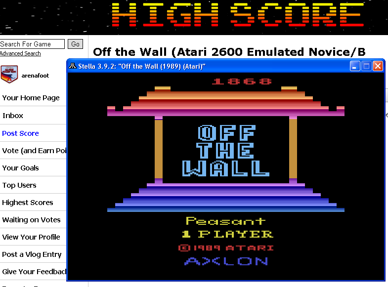 Left difficulty switch setting must remain in the B/Novice position throughout gameplay. Right difficulty switch setting may be in any position at any time. No use of trainers, cheats, saved game files, auto-fire (when not default present in-game), emulator save states, or other emulator advantages. No use of code modifications that give the player an advantage over other players. No continues. It is discouraged and may lead to voters not accepting your score to: - excessively point farm - use glitches or other game exploits |