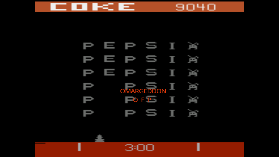 Only one game variation in this title. Game select switch has no effect. Difficulty switch settings have no effect in this title, and can therefore be in any position at any time. Prototype. Also known as "Coke Wins" 3.3.22 |