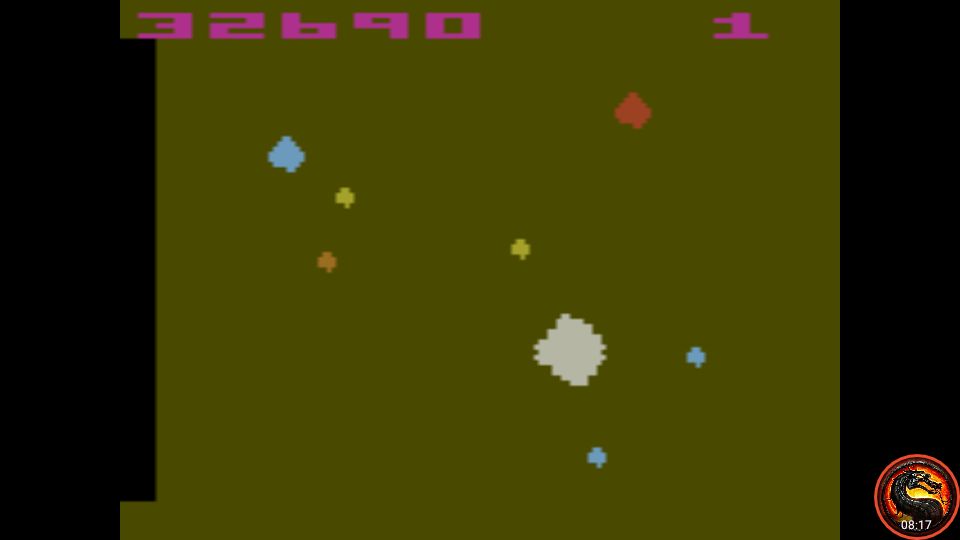 Game 4: ∙ Fast speed ∙ Extra life every 10,000 ∙ Hyperspace Left difficulty switch setting must remain in the position indicated by the leaderboard category. A/Expert: UFOs B/Novice: No UFOs Right difficulty switch setting has no effect in a one-player variation, and can therefore be in any position at any time. There is a rare glitch that awards a player between 4,000 and 6,000 points for striking a single object. There is no known way to cause this glitch intentionally. ✅ Scores achieved that include this glitch are ALLOWED. Two versions of Asteroids were released. One version with the copyright screen intro, and one without. ✅ Player may use either version. A 4.2.22 |