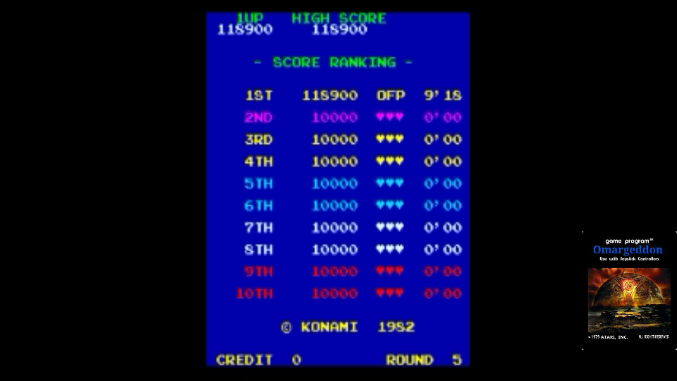 Play with default settings unless otherwise specified. If the ROM set is not mentioned, play the parent ROM. No use of trainers, cheats, saved game files, emulator save states or other emulator advantages. No use of code modifications that give the player an advantage over other players. 1 player only. No continues. In-game/internal autofire is only allowed if a game has it (enabled through hard or soft DIPs). External/MAME/cheat-based autofire is not allowed. It is discouraged and may lead to voters not accepting your score to - excessively point farm - use glitches or other game exploits You can use any emulator you want (Retropie, rain, neo geo, Coinops, Antstream, handhelds,...). If specific emulators or versions are restricted, it will be mentioned in the Specific rules. For Top 3 we encourage (but NOT mandatory) to provide: a) A full video with DIP Switches to be shown in the video (at the start or at the end of your performance). If DIP Switches are not available, Service Menu should be used instead (at the start of your performance). If no difficulty settings is available on your game, you still have to show either DIP switches or service mode showing this (if not mentioned in the specific rules). OR b) An INP file. Please state your MAME version in the comments. And add an URL where the voter can download your .inp. (We currently have no way to store those files on the server, but it is on the roadmap). For INPs: o We encourage to also show the DIPs during your video play. o Delete NVRAM before recording/viewing. Many arcade games that MAME emulates save some information (like high scores) in non-volatile ram (NVRAM), which by default MAME saves in the nvram subfolder. For some games (not all) the RNG is affected by NVRAM, so an .inp file recorded with non-empty nvram won't replay correctly on anyone else's system. o To record INP file, you require Wolfmame: You can download it here : https://github.com/mahlemiut/wolfmame/releases (or on MARP). o Record one run gameplay when using INP. |
