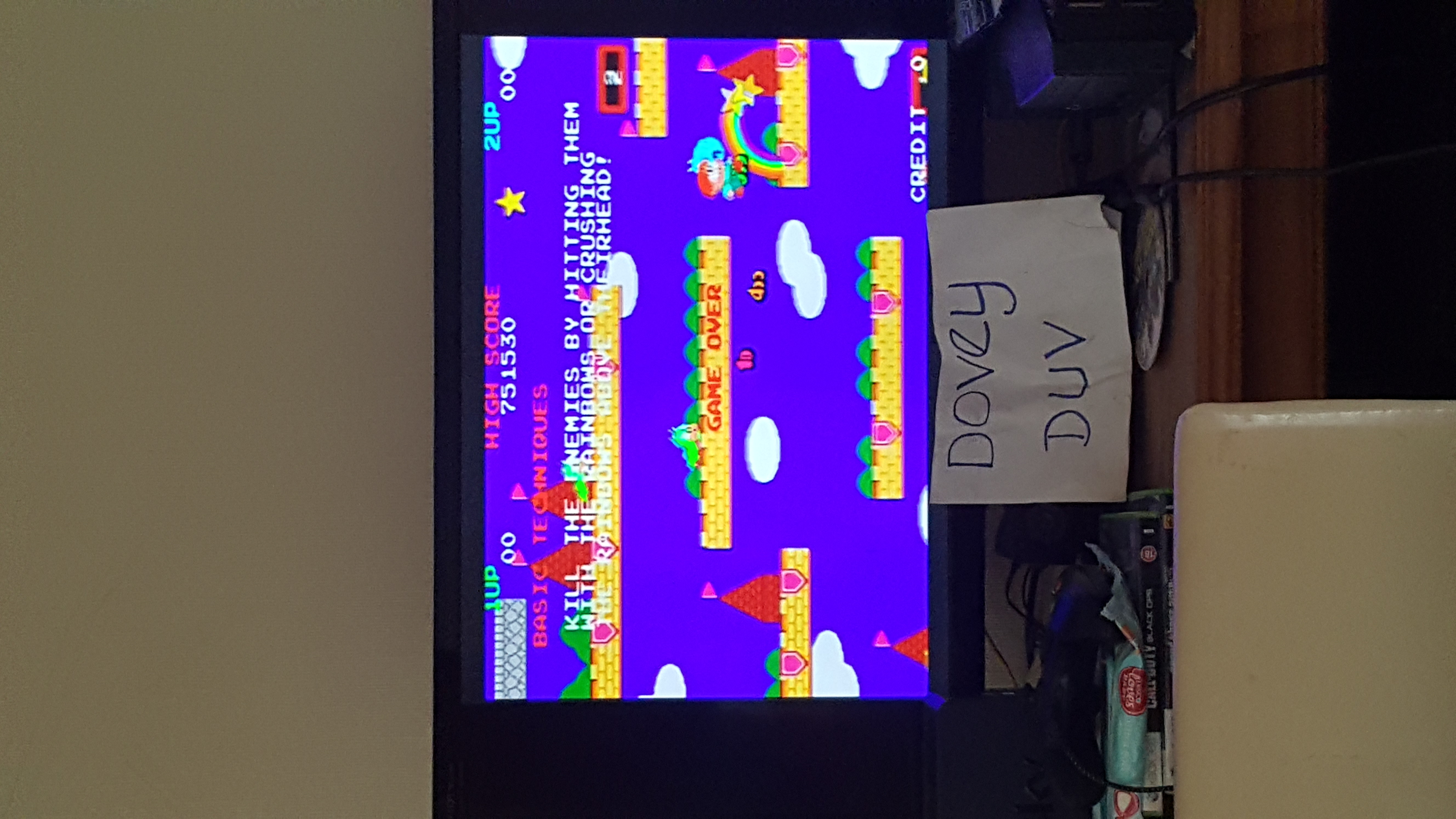 IMPORTANT: Must reset game between attempts Mame romset: rbisland Cabinet: Upright | Flip Screen: Off Service Mode: Off | Difficulty: Medium | Language: English Lives: 3 | Bonus Life: 100k, 1000k | Complete Bonus: 1 Up |