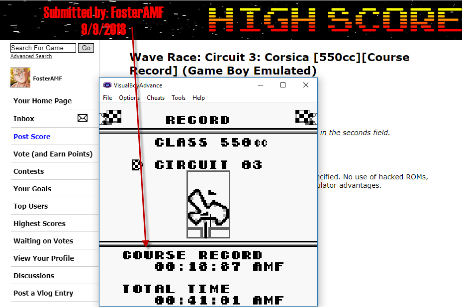 Play the game in 1 player mode with specific settings : - Choose "Practice", then enter your Rider initial, choose "Circuit" then "550cc" and finally, choose the "Circuit". - 550cc = 2 laps by race and 4 circuits (Bahamas / Hawaii / Corsica / Rio ONLY). * EMULATION RECOMMANDATIONS * - Internal clock of following emulators : VBA/VBA-M, SameBoy, RetroArch) is not accurate and for this reason, they are banned on lvlupscore.com -> More informations if needed : http://www.gbrunners.com/game-boy-speedrunning-explained For Top 3, we encourage (and not impose) to provide: - Emulator used (name and version). - Real time FPS (Gameboy FPS is around 59 or 60 fps), because of a leaderboard based on an in-game timer, - A video evidence because of all previously reasons. *ORIGINAL HARDWARE* No specific for now... feel free to contact game-admin if you need. * INFORMATIONS * - This game has an GamePak' battery-backed internal memory. (for saving the records) |