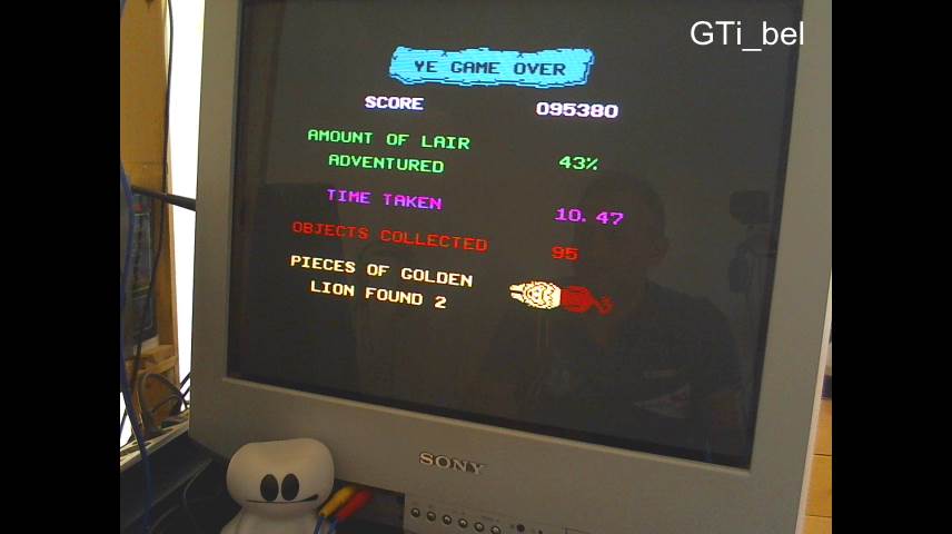 Play the game in 1 player mode with default settings. Completion Score is calculated as follow: Percentage Lair Adventured-(Whole Minutes*(1+Lion Pieces)) |