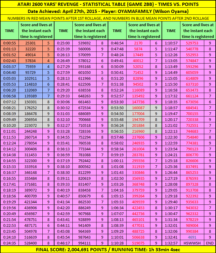 Left difficulty switch setting must remain in the B/Novice position throughout gameplay. Right difficulty switch setting may be in any position at any time. No use of trainers, cheats, saved game files, auto-fire (when not default present in-game), emulator save states, or other emulator advantages. No use of code modifications that give the player an advantage over other players. No continues. It is discouraged and may lead to voters not accepting your score to: - excessively point farm - use glitches or other game exploits |